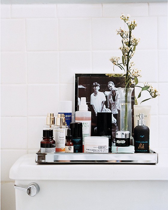 Такую вещицу даже необязательно выискивать в IKEA или на просторах «Амазона»: можно использовать ненужный поднос или подобную подставку. Главное, что у вас появится специальное место для всех этих симпатичных флаконов с зельями красоты.