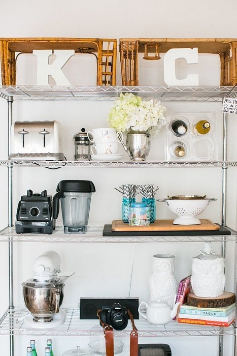 Почему? Да потому что он занимает куда меньше места на кухне, чем классический стеллаж из дерева. А на его полках точно не заведётся ржавчина и другие неприятности.