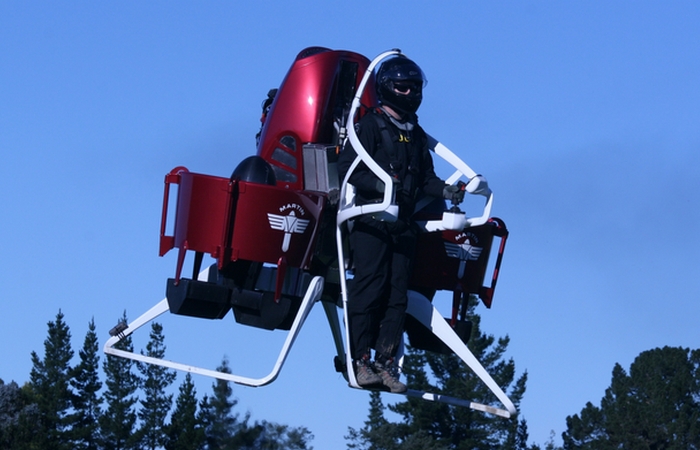 Компания Martin Jetpack в Новой Зеландии впервые представила свой джетпак в 2008 году, а в 2016 году на свет появилась коммерческая версия ранца для полетов. На самом деле, эта штука не реактивная, а использует технологию воздушных винтов в кольцевых каналах.